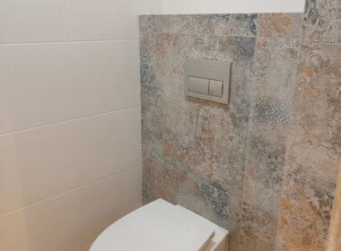 -łazienka wykończona płytkami w dużym formacie