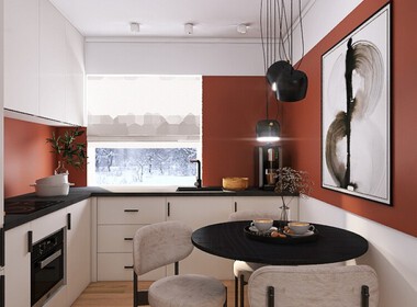 -kuchnia z meblami na wymiar wykonana przez stolarza, wyposażona w sprzęt AGD