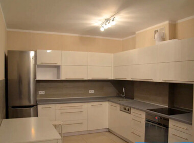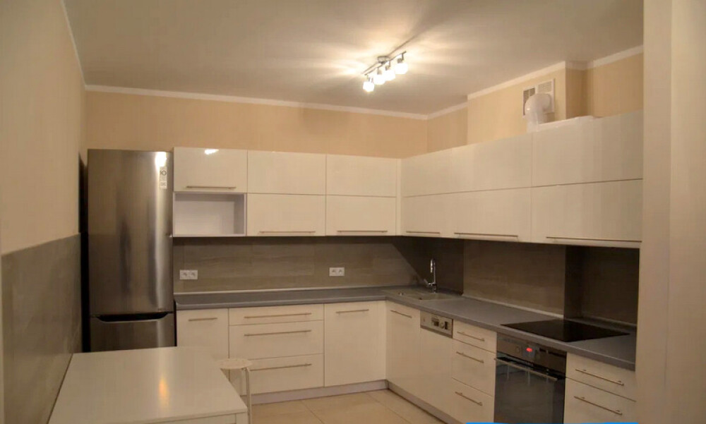 -w kuchni meble wykonane na wymiar wraz ze sprzętami AGD (chłodziarko-zamrażarka, zmywarka, piekarnik, płyta, ceramiczną, okap).