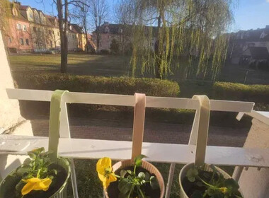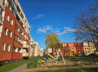 Śródmieście z bogatą infrastrukturą, a jednocześnie boczna zaciszna uliczka z widokiem ze wszystkich okien na zielony teren niezabudowany.